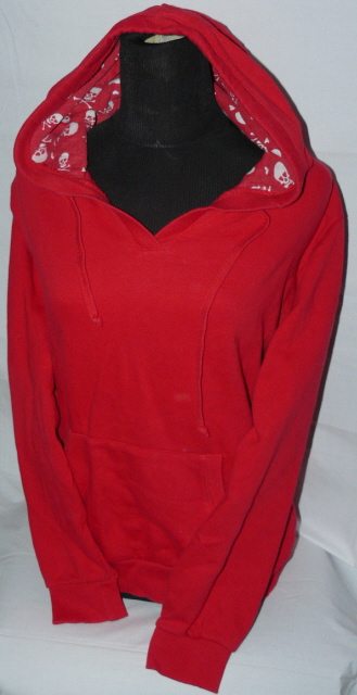 barva: červená materiál: 80% bavlna, 20% polyester velikost: M stav: mírně nošená, u jedné kapsy flek